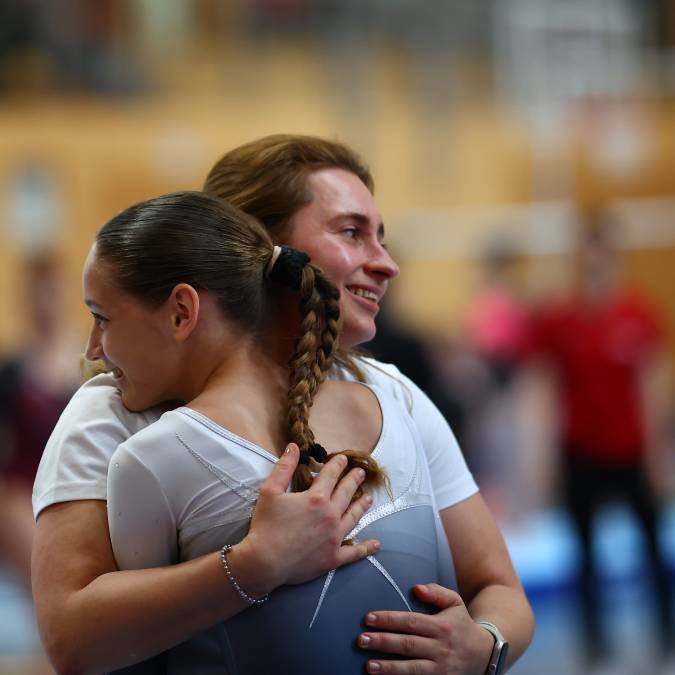 Gerät Nummer drei brachte dann bereits die Entscheidung: Am Schwebebalken dominierten die Berkheimerinnen eindrucksvoll und erturnten sich 49,25 Punkte - satte 5,35 Punkte mehr als Heidenheim. Eine herausragende Übung zeigte Daria Hlodik, die dafür 13,50 Punkte erhielt. Aber auch die anderen absolvierten ihr Programm auf dem Zitterbalken souverän. Am abschließenden Boden brannte nichts mehr an und das Team machte den Tagessieg perfekt. Daria Hlodik war Top-Scorerin des gesamten Wettkampfs. Am Ende war der Jubel groß, die Turnerinnen lagen sich in den Armen und es flossen Freudentränen. Der Aufstieg in die Oberliga - das Oberhaus der STB-Liga - ist geglückt!