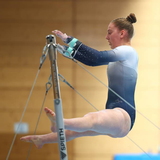 Die Spannung vor dem Saisonfinale war groß: Berkheim oder Heidenheim-Nattheim? Die beiden Teams an der Tabellenspitze gingen punktgleich in den Wettkampf. Es war klar, wer von beiden in Aspach besser turnt, steigt auf. Am ersten Gerät, dem Sprung, bekam Sara Virga Espana die Tageshöchstnote mit 12,27 Punkten, insgesamt aber erwischte die Konkurrenz von der Ostalb den besseren Start und lag mit 1,9 Punkten in Führung. Ab dem zweiten Gerät aber drehten die Berkheimerinnen auf. Überhaupt präsentierten sie sich deutlich stärker als beim vorherigen Wettkampf in Ellhofen eine Woche zuvor. So gelang es unserem Team am Barren, den Gesamtrückstand auf Heidenheim auf 0,7 Punkte zu verkürzen.