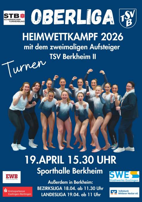 Der Vorstand des TSV Berkheim lädt zur ordentlichen 131.Delegiertenversammlung des Vereins ein. Sie findet am Freitag, 17.April 2026 um 19 Uhr im kleinen Saal der Berkheimer Osterfeldhalle statt. Auf der Tagesordnung stehen u.a. Vorstandswahlen.