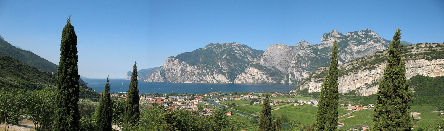 Der Gardasee war nach der Weiterfahrt in greifbare Nähe gekommen. Der berühmte Aha-Blick von Nago hinunter nach Torbole machte Lust auf die kommenden Tage im schönen Venetien (Panoramafoto anklicken). Entlang des Ostufers führte uns der Weg nach Malcesine. Ein kurzer Aufenthalt in der bezaubernden Stadt war ein muss. Malcesine liegt unter dem Monte-Baldo Massiv. Geprägt ist das Bild durch die Altstadt mit ihren vielen engen Gassen und der von weithin sichtbaren Skaligerburg. Diese steht auf einem Felsvorsprung direkt am Ufer des Sees. Auch Goethe machte 1786 während seiner berühmten „Italienreise" Station in Malcesine. Dabei soll er sogar kurz wegen Spionageverdachts festgehalten worden sein, als er beim Zeichnen der Skaligerburg beobachtet wurde. Viele Gedenktafeln und eine Büste, die am Hotel San Marco in unmittelbarer Nähe zum Hafen angebracht ist erinnern an seinen Besuch.