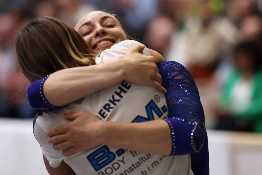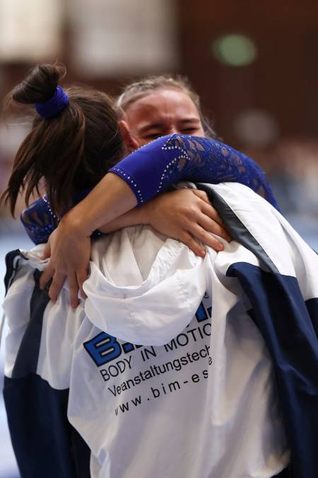 Erstmals in dieser Saison konnte der TSV Berkheim in Bestbesetzung antreten, ohne Krankheits- oder Verletzungssorgen - und von Anfang an lief es super. Angefeuert von einem Berkheimer Fanblock starteten die Turnerinnen bereits am Boden mit mehr als 48 Gerätepunkten und ließen dabei Hauptkonkurrent Lüneburg klar hinter sich. Auch an Sprung, Barren und Balken turnte die Mannschaft nahezu fehlerfrei und hielt dem Druck stand, als Schlusslicht in der Tabelle punkten zu müssen. Irene Lanza, die an allen vier Geräten turnte, erreichte mehr als 50 Punkte und war damit drittbeste Einzelturnerin des gesamten Wettkampfs. Carina Kröll und Anni Bantel, die erstmals in dieser Saison zum Einsatz kam, zeigten an drei Geräten starke Leistungen. Auch Anna-Marlen Piée, Petra Stabile, Sophie Spohn, Denise Herrmann und Sara Virga Espana überzeugten und wuchsen teilweise über sich hinaus. „Ihr habt eine super Teamleistung gezeigt, euch untereinander unterstützt und das ist das, was euch auszeichnet. Ihr seid ein super Team“, lobte der Trainer unsere Turnerinnen - der Rest war Party: „Oh wie ist das schön“, schallte es auf der Rückfahrt durch den Fan- und Mannschaftsbus.