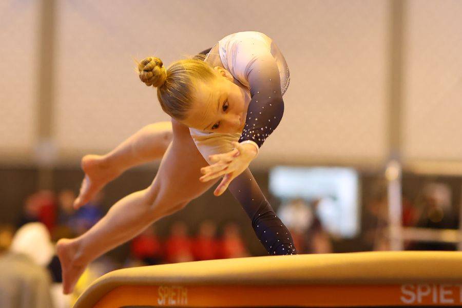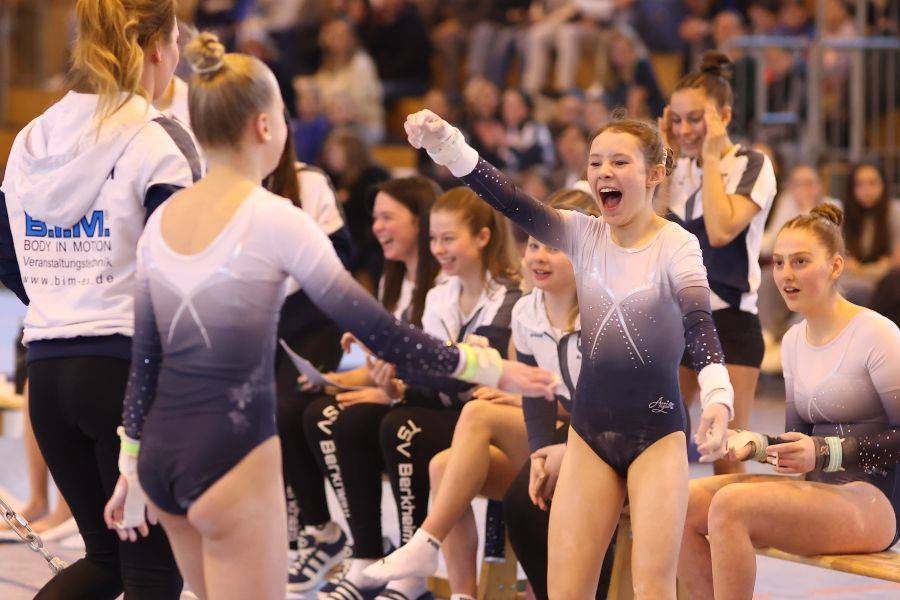 Überragender Saisonauftakt für die zweite Turnmannschaft des TSV Berkheim: Der Liga-Neuling gewann seinen Verbandsliga-Heimwettkampf in der Berkheimer Sporthalle mit deutlichem Vorsprung vor der Konkurrenz und setzte damit gleich bei der Premiere ein echtes Ausrufezeichen. Für die neue verantwortliche Trainerin Denise Hermann war es ein perfekter Einstand. Obwohl als Aufsteiger gestartet, zeigten sich die Berkheimerinnen von Beginn an nervenstark und dominierten an den ersten beiden Geräten: Vor allem am Balken ließen sie den anderen sieben Mannschaften keine Chance, auch am Barren erzielten sie die höchste Punktzahl. Am Sprung und Boden konnten sie sich danach ein paar kleinere Fehler erlauben - das änderte nichts mehr am überzeugenden Gesamtsieg. Top-Scorerin war Daria Hlodik, die mit 47,25 Punkten die höchste Wertung als Vierkämpferin bekam. Am Barren (12,10 Punkte) war sie beste Einzelturnerin des Wettkampfs. Herausragend war aber auch die Leistung von Sara Virga Espana, die sowohl am Balken (13,55 Punkte) als auch am Boden (12,40 Punkte) die höchste Punktzahl unter allen Turnerinnen errang und am Sprung (11,35 Punkte) beste TSV-Turnerin war. Am Barren kam sie nicht zum Einsatz, so dass am Ende bei ihr nur drei Geräte-Ergebnisse in die Wertung flossen. Für Berkheim turnten außerdem Sofiia Kondratenko, Lisa Eichler, Sophia Schneider, Marie Eberspächer, Mara Neher und Ylvi Bönisch. Das Team zeigte insgesamt eine starke Leistung und steht damit nach dem ersten von drei Saisonwettkämpfen an der Tabellenspitze der Verbandsliga. Der nächste Wettkampf ist am 17.Mai in Ellhofen.