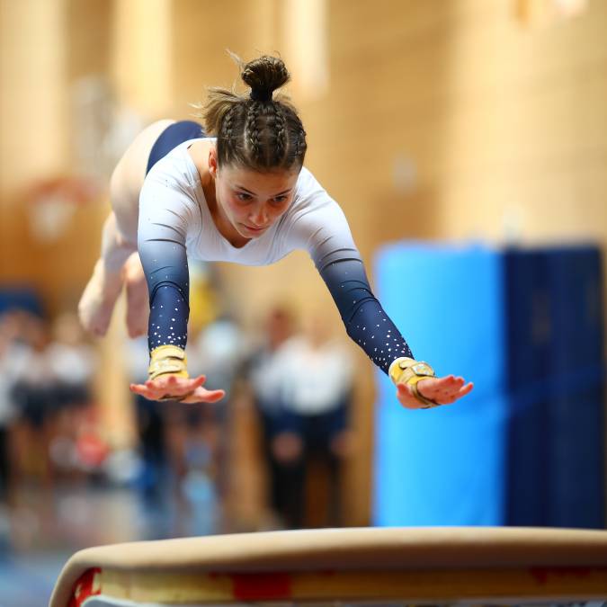 Die Spannung vor dem Saisonfinale war groß: Berkheim oder Heidenheim-Nattheim? Die beiden Teams an der Tabellenspitze gingen punktgleich in den Wettkampf. Es war klar, wer von beiden in Aspach besser turnt, steigt auf. Am ersten Gerät, dem Sprung, bekam Sara Virga Espana die Tageshöchstnote mit 12,27 Punkten, insgesamt aber erwischte die Konkurrenz von der Ostalb den besseren Start und lag mit 1,9 Punkten in Führung. Ab dem zweiten Gerät aber drehten die Berkheimerinnen auf. Überhaupt präsentierten sie sich deutlich stärker als beim vorherigen Wettkampf in Ellhofen eine Woche zuvor. So gelang es unserem Team am Barren, den Gesamtrückstand auf Heidenheim auf 0,7 Punkte zu verkürzen.