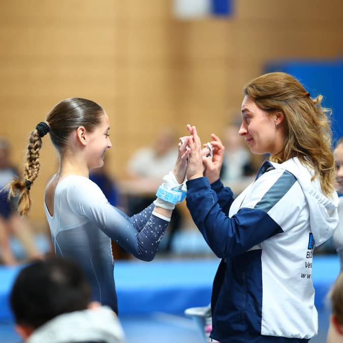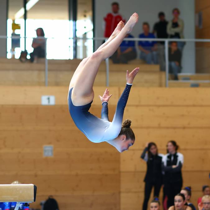 Gerät Nummer drei brachte dann bereits die Entscheidung: Am Schwebebalken dominierten die Berkheimerinnen eindrucksvoll und erturnten sich 49,25 Punkte - satte 5,35 Punkte mehr als Heidenheim. Eine herausragende Übung zeigte Daria Hlodik, die dafür 13,50 Punkte erhielt. Aber auch die anderen absolvierten ihr Programm auf dem Zitterbalken souverän. Am abschließenden Boden brannte nichts mehr an und das Team machte den Tagessieg perfekt. Daria Hlodik war Top-Scorerin des gesamten Wettkampfs. Am Ende war der Jubel groß, die Turnerinnen lagen sich in den Armen und es flossen Freudentränen. Der Aufstieg in die Oberliga - das Oberhaus der STB-Liga - ist geglückt!